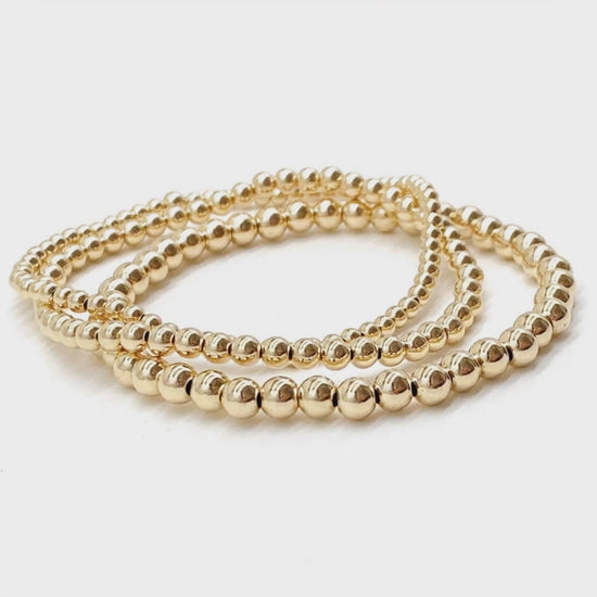 These minimalist Gold bracelets are made in Sterling silver and 14k Gold filled. Made with 3mm, 4mm or 5mm beads. Made with stretch cord and price is for one bracelet. Prefect for Layering and great gift for any occasion.