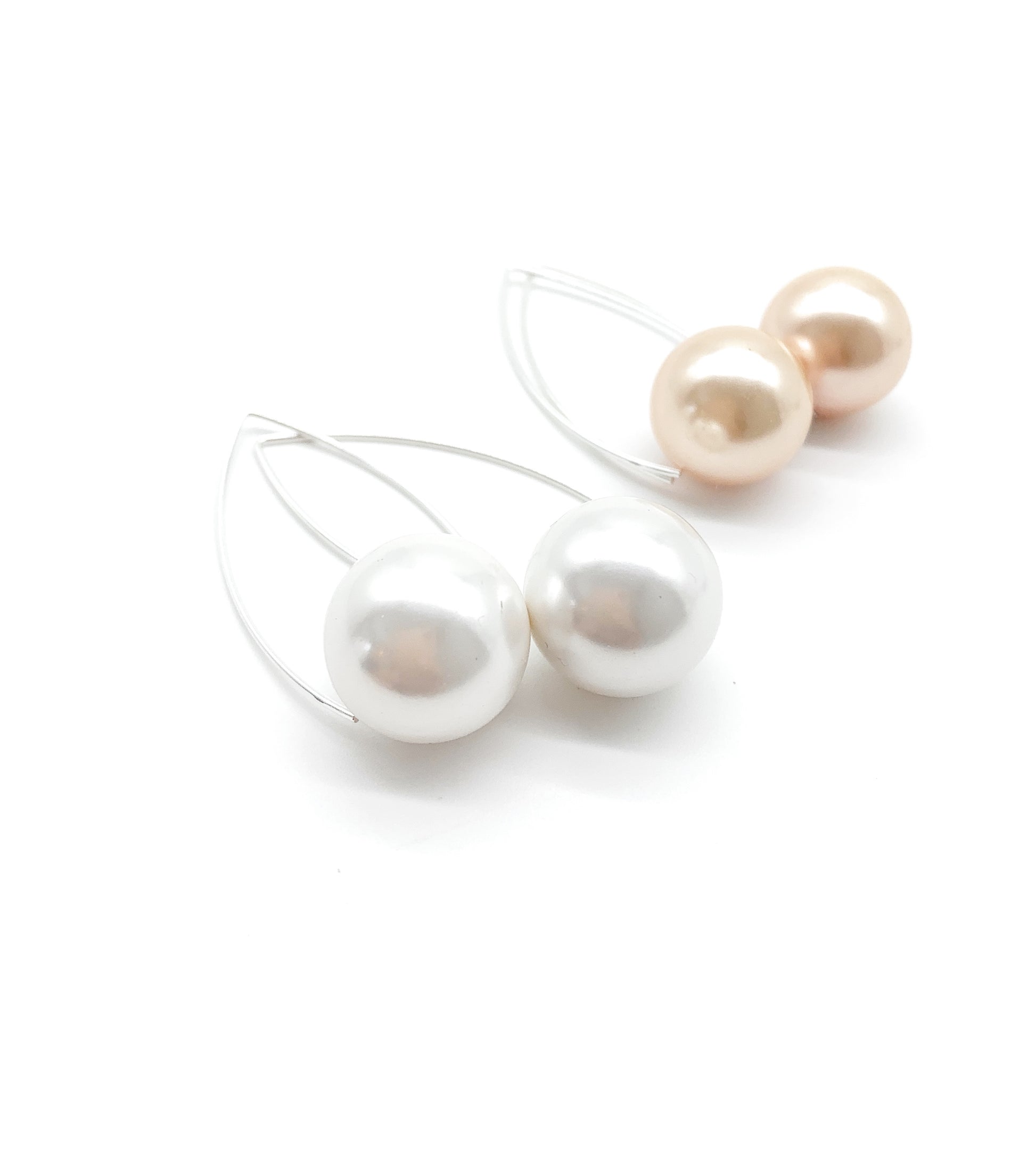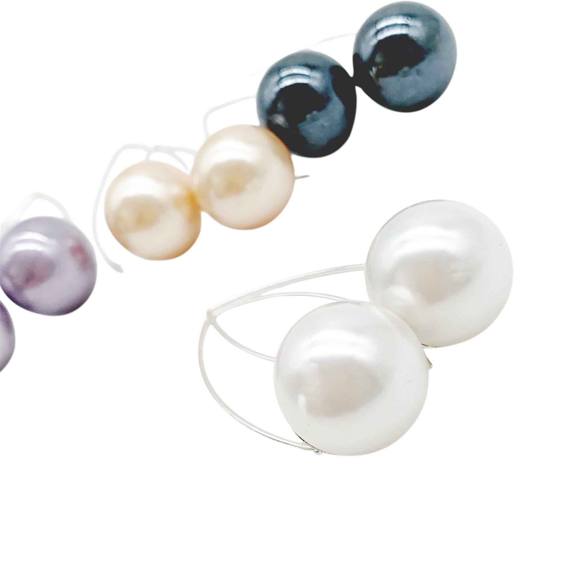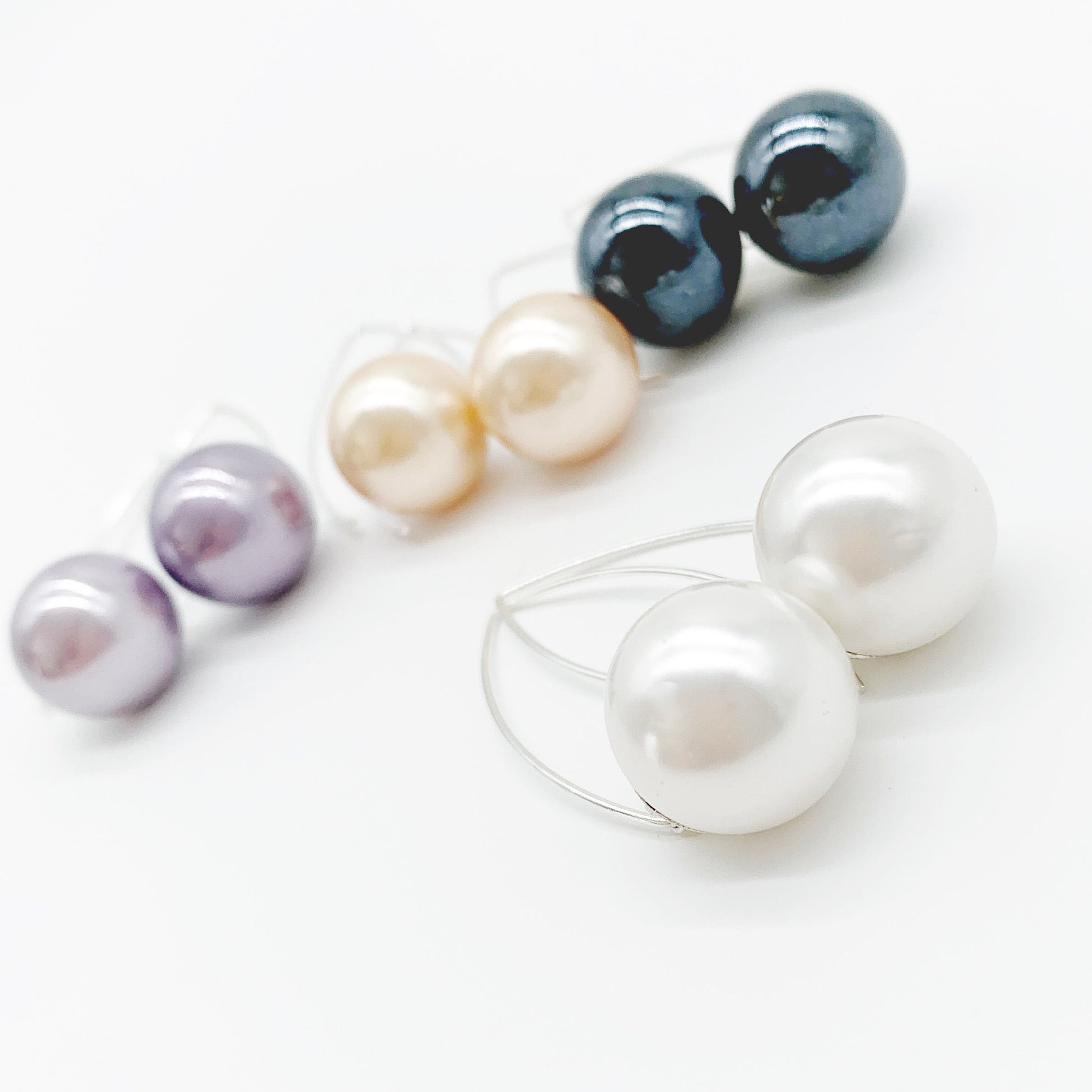 These beautiful pearl earrings are Made with Glass pearls and sterling silver. Light weight and Prefect for everyday wear. Available in white, Pink, Black and Purple.