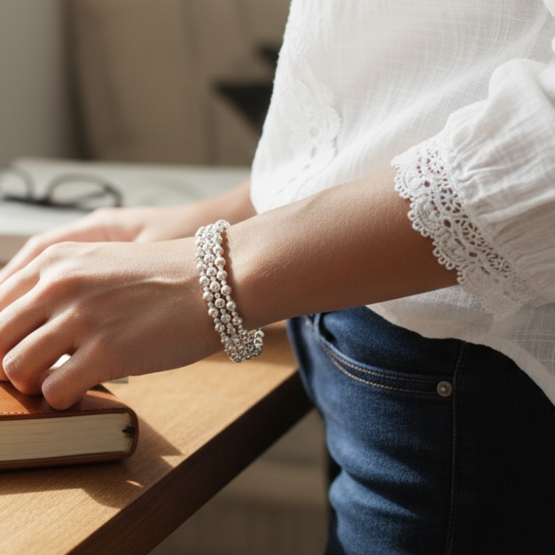 Indulge in luxury with our stunning silver beaded bracelet. Handcrafted with the finest sterling silver, this bracelet exudes sophistication and elegance. Elevate any outfit with this timeless and versatile piece, perfect for any occasion. Make a statement with our exclusive silver beaded bracelet. silver stretch bracelet beaded with 3mm and 5mm Sterling silver Beads. Great to wear alone or layered with other beaded bracelets. This stretch bracelet measures about 7inches. Please contact me if you would like a custom size