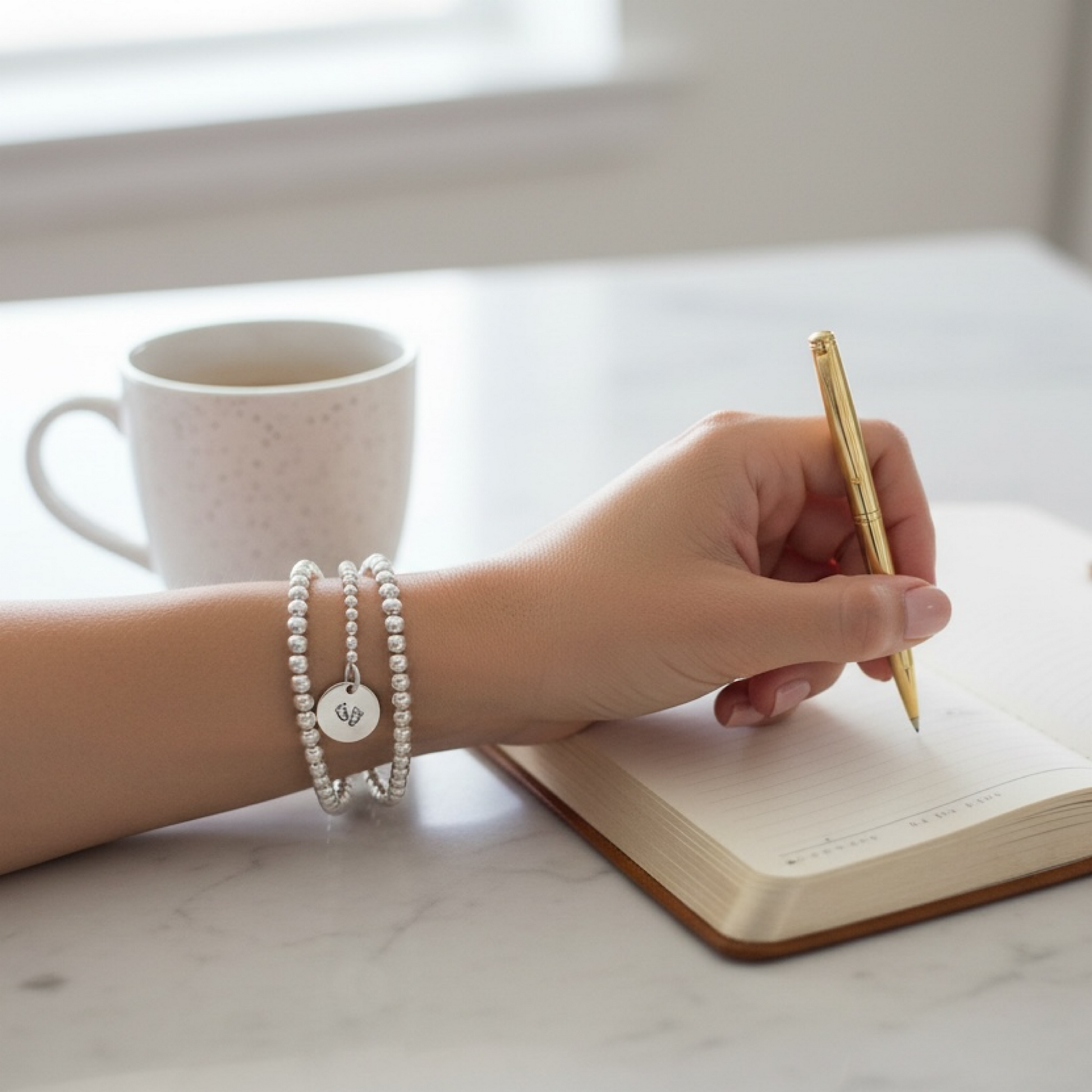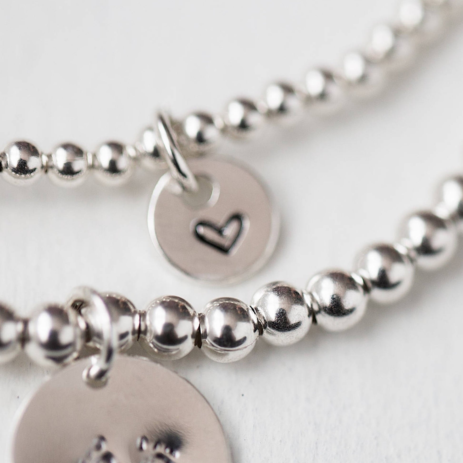 Silver Initial beaded bracelet is a beautiful piece that will make a great gift for any occasion. The Silver Monogram bracelet is made of 925 sterling silver and available in custom bead sizes. Sterling silver stretch initial bracelets beaded with Sterling silver 3mm beads. Great to wear alone or layered with other beaded bracelets. Bracelet measuring about 7 inches with stretch.