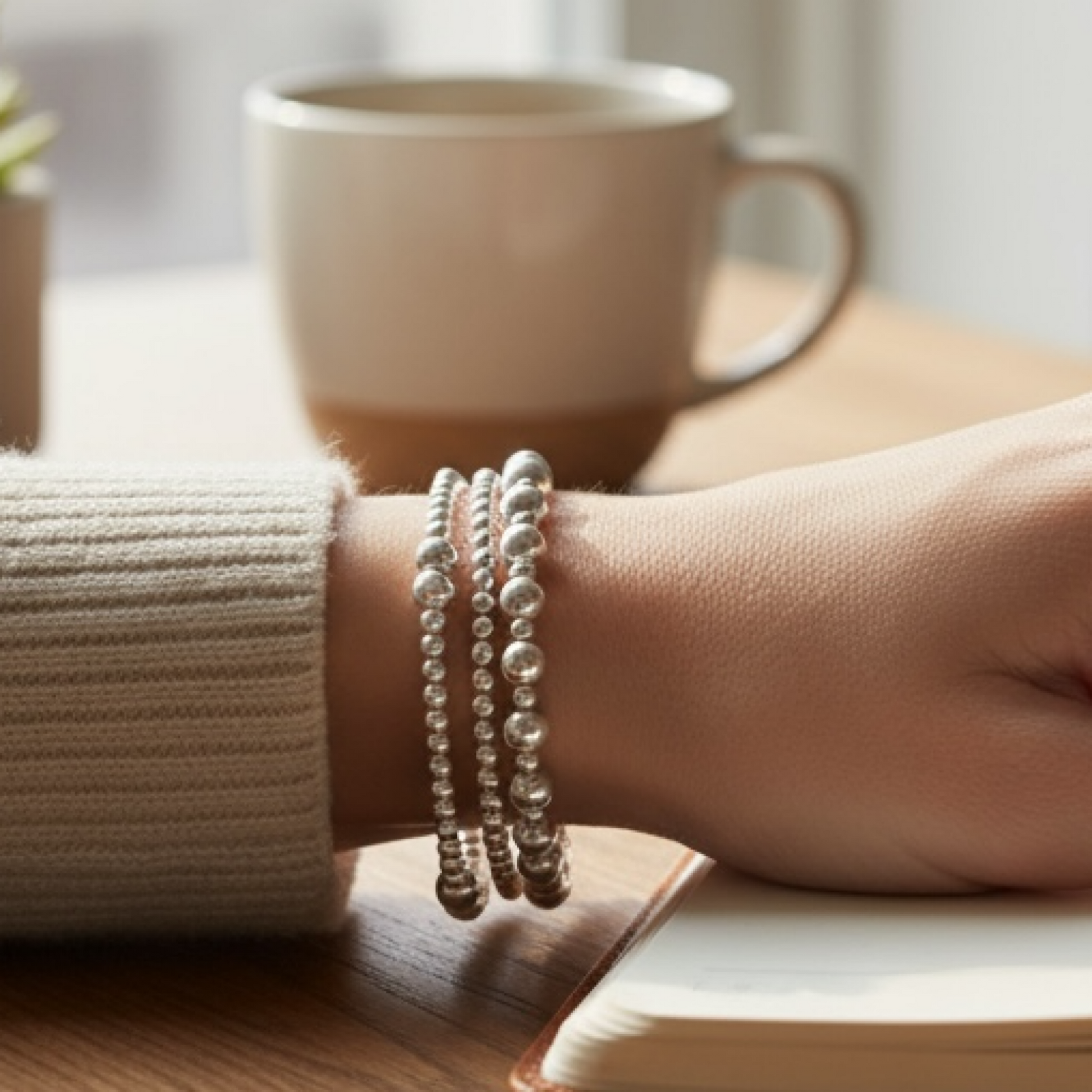 Sterling silver stretch bracelets beaded with 3mm and 4mm beads. Great to wear alone or layered with other bracelets. Bracelet measuring about 6 1/2-7 inches with stretch please contact for custom sizing. *Price is for all 3 bracelets*
