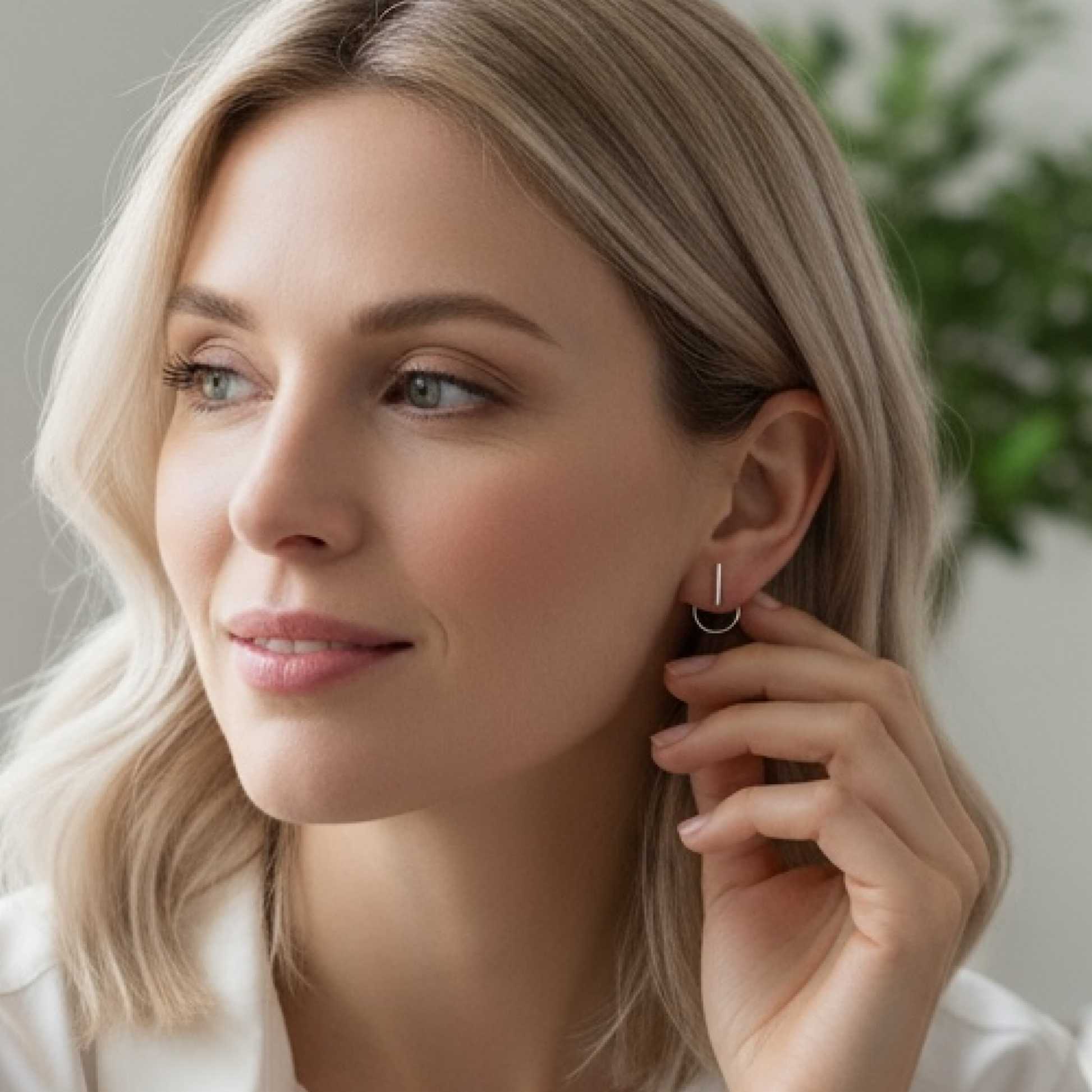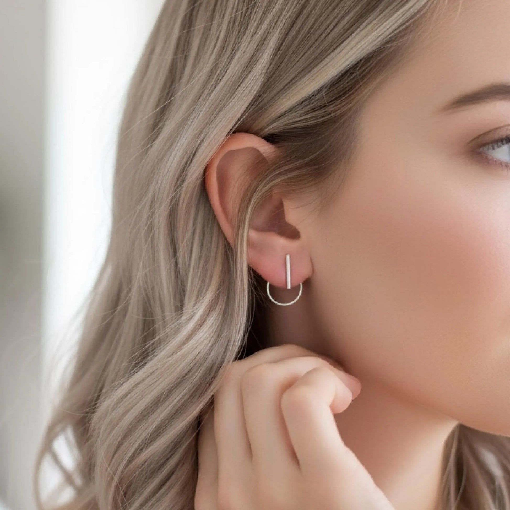 The Simply yet stunning Ear Jackets are great for everyday wear and made with 925 sterling silver. Earring Stud length is about 13mm and back circle is about 16mm in total. The bar can be worn separately which makes 2 unique styles. The prefect gift for any occasion.