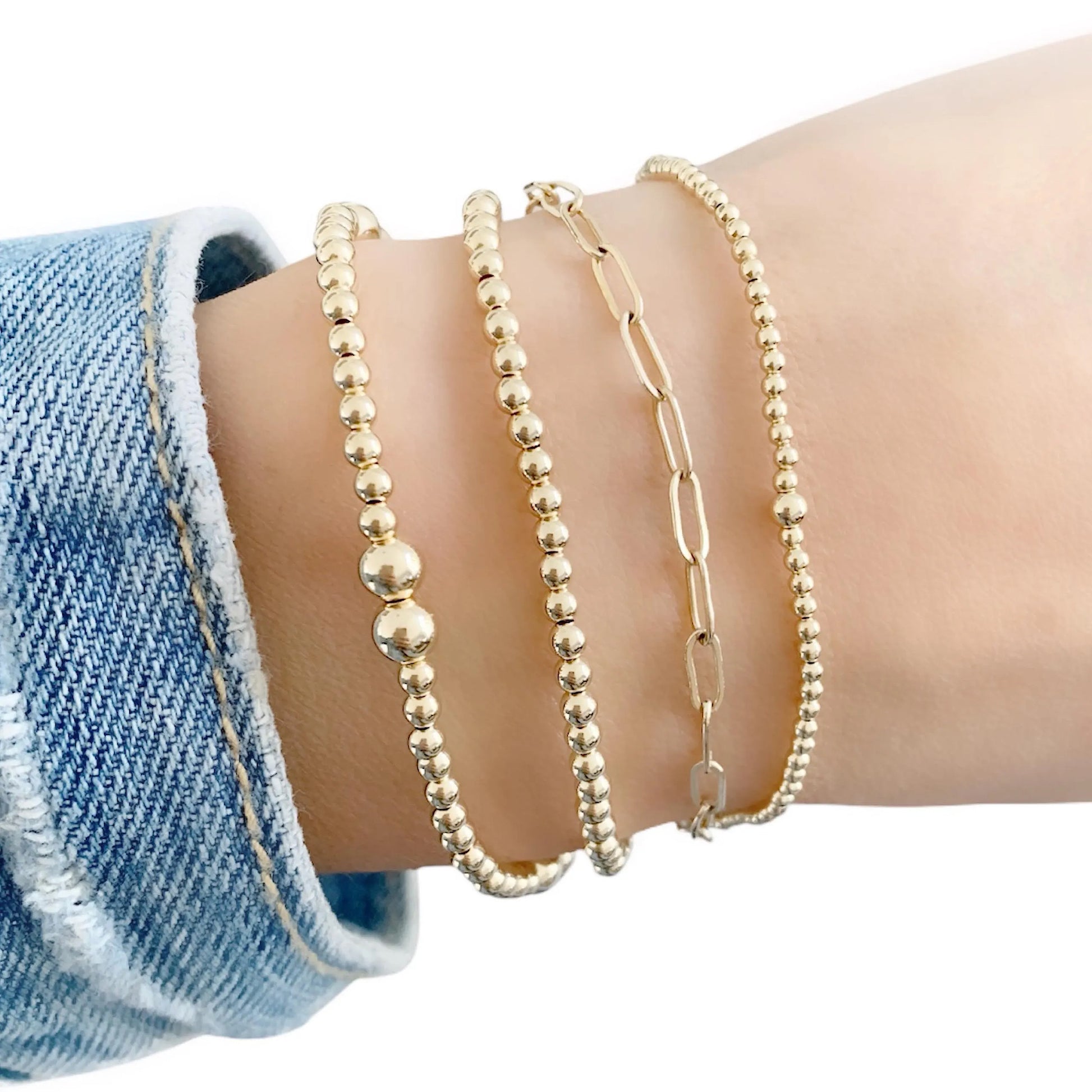 14k Gold Filled beaded bracelet • Minimalist Beaded Ball Bracelet • Everyday Gold Bracelet • Dainty Beaded stacking Bracelets For Women